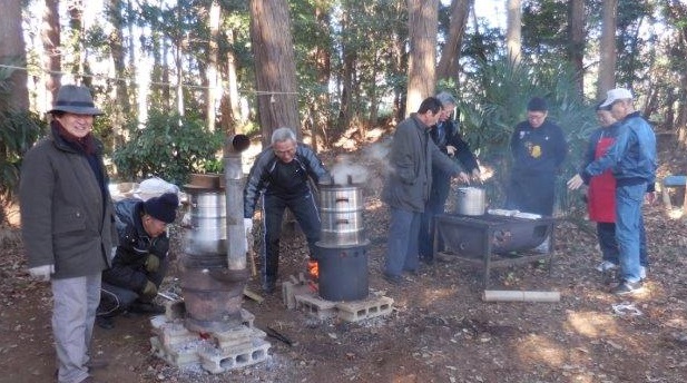会計報告ですが、1万円弱残りました。これを場所と諸道具をお借りしたボーイスカウトに 御礼として渡したいと考えます。会長山中君の承認も得ましたが、皆さまご了承下さい。 実は朝方当初は風が強く、それも釜戸の煙が敷地内の住宅を取り巻き、住人が飛び出て くる始末。それには直ぐに誤りに行っているので問題はなかったのですが、準備方一同、 今日は大丈夫?と心配したものですが、風は次第に弱くなり、また、火も充分に付くと煙も 少なくなり、ホッと一安心した次第です。
