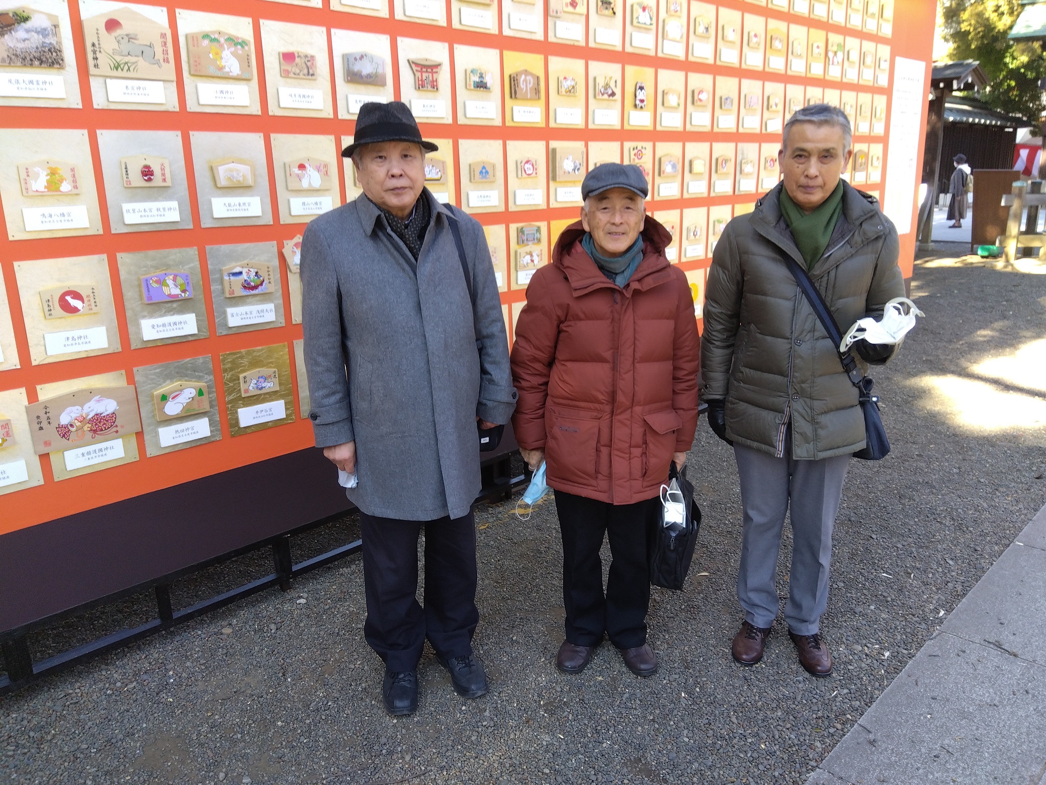 絵馬の前で